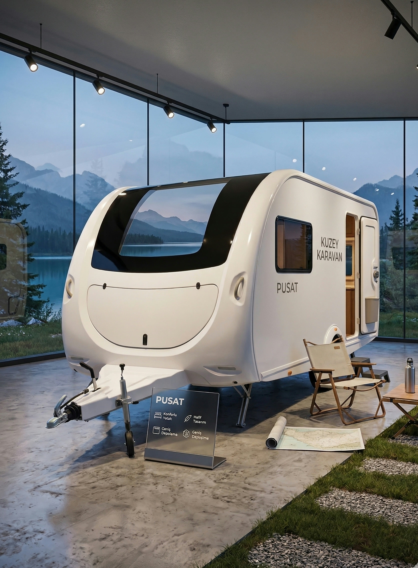 PUSAT 4.20, dört kişilik kullanım için yenilenen yaşam planı, dönüştürülebilir oturma grubu ve ranza kurgusuyla geliştirilen kompakt bir çekme karavandır. 420 cm gövde uzunluğu ve 215 cm toplam genişlik içinde; 150 lt temiz su altyapısı, porta-potti WC, XPS izolasyon, EVACOOL 90 Lt buzdolabı, 5 kW dizel ısıtıcı, 12V boiler ve AL-KO / KNOTT yürüyen aksam kombinasyonunu bir araya getirir. PUSAT'ta amaç yalnızca estetik bir iç mekân değil; günlük kullanımı, gece modunu ve yolda güven hissini birlikte çözen belgeli bir yaşam kurgusu sunmaktır.
