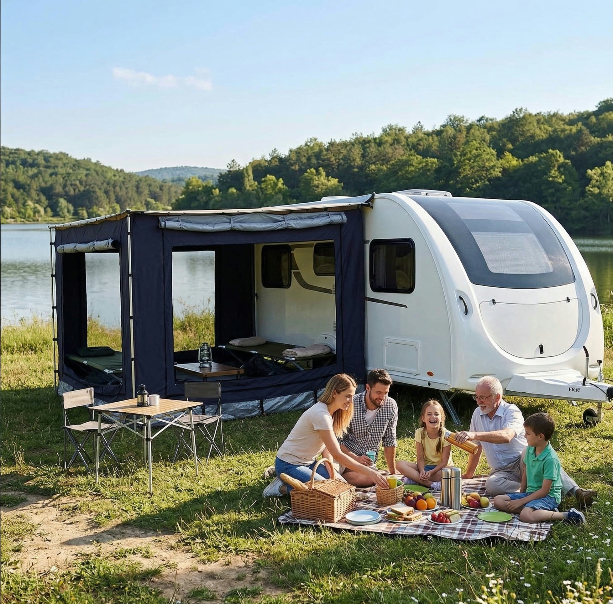 4 kişilik yenilenen yaşam planı, dönüşebilen yatak düzeni ve belgeli altyapısıyla kompakt ama tam donanımlı bir gezi karavanı.